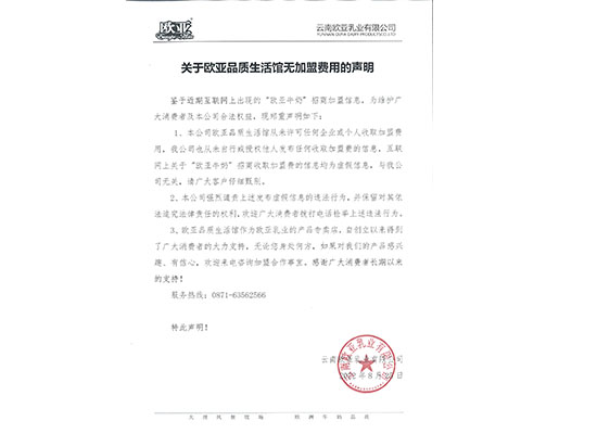 云南歐亞乳業有限公司子公司牧場環保信息公示